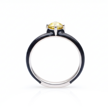Feature Description Metal Guaranteed Sterling Silver 925 Gemstone 100% Natural Mali Garnet Gem Color Brilliant Lemon-Yellow Band Finish High-polish black enamel / rhodium plating over silver Silver Authenticity “925” authenticity hallmark on inner band -