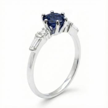 Feature Details Product Type Gemstone Statement Ring Main Stone Natural Dark Blue Sapphire (Round Cut) Stone Color Deep Navy / Midnight Blue Accent Stones Round & Baguette-Cut Shimmering White Accents Metal Material Premium 925 Sterling Silver Finish High-Polish Rhodium Plating Setting Type 6-Prong Center with Graduated Channel/Prong Accents Style Vintage-Inspired / Classic Tapered Occasion Anniversary, Birthstone (September), Engagement -