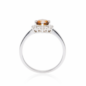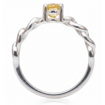 Attribute Details Product Type Solitaire Accent Ring Center Stone Round Brilliant Cut Yellow Sapphire) Side Stones Pavé-set Round White Accents Metal Finish High-Polish White Metal (Rhodium Plated) Setting Type 4-Prong Center with Pavé Shoulders Design Feature Architectural Geometric Gallery with Cathedral Lift Band Width Slim, Tapered Design Style Modern / Architectural / Contemporary -