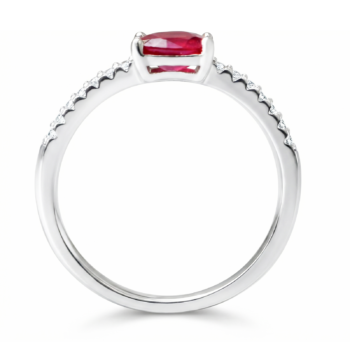Feature Description Metal Type 925 Sterling Silver (High Polish Finish) Center Stone Oval-cut Ruby (Vivid Red) Stone Setting Classic 4-Prong Solitaire Band Detail Half-eternity band featuring pave-set clear accent stones Style Timeless, Romantic, and Elegant Best For Promise Ring, Anniversary Gift, or July Birthstone -
