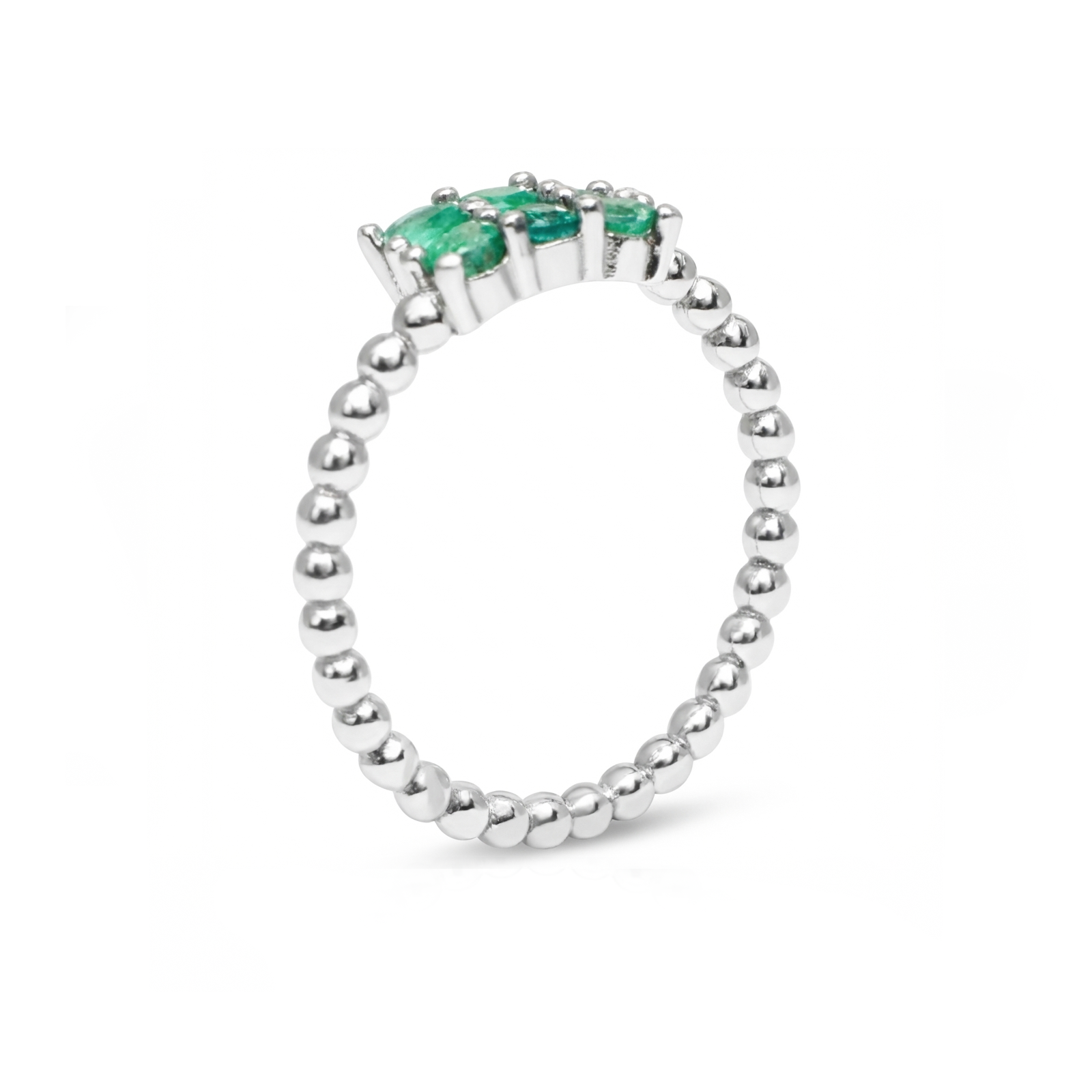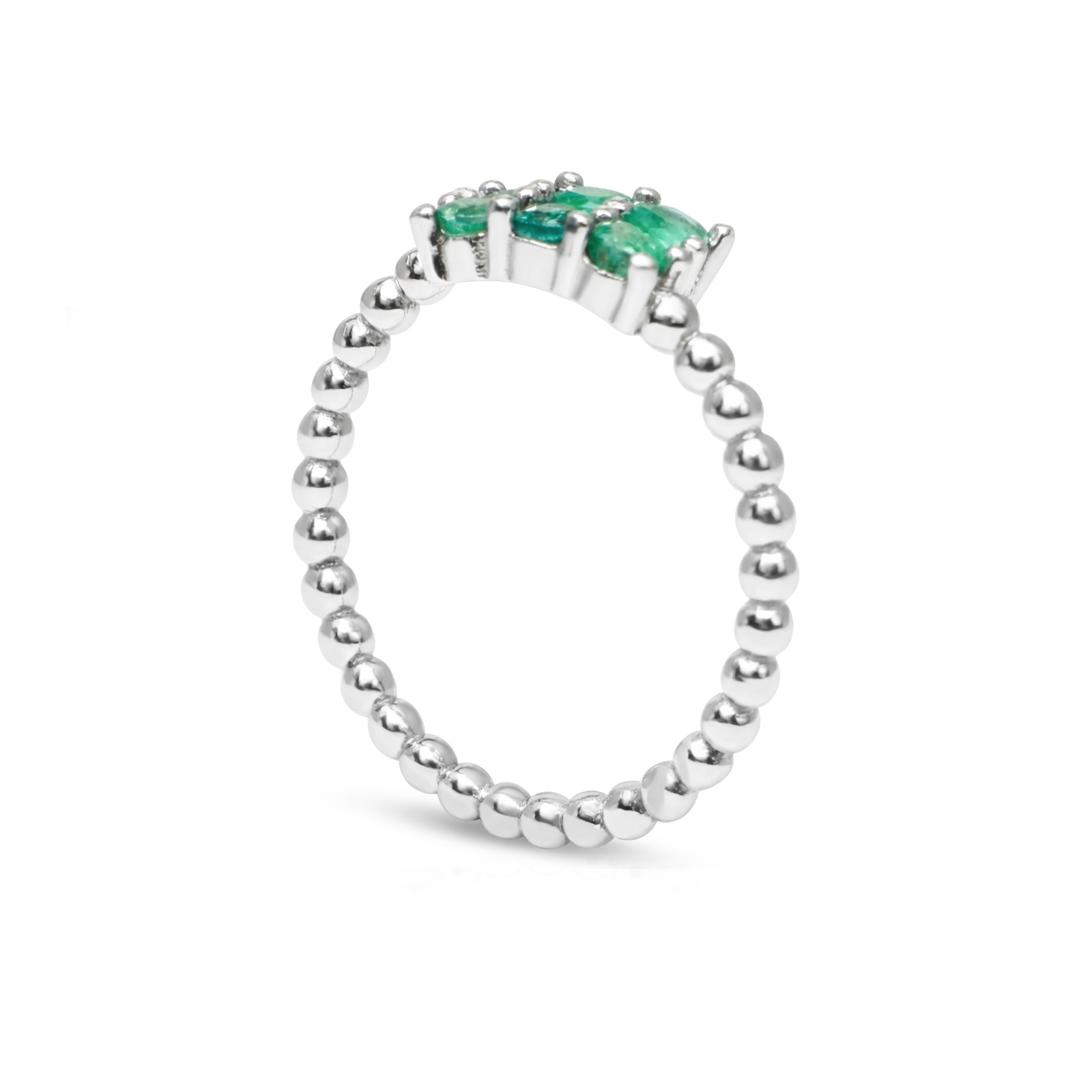 Elevate your everyday style with the vibrant elegance of this Sterling Silver ring. This piece features a stunning arrangement of six genuine emerald gemstones, known for their deep, captivating green hues. The cool tone of the polished silver provides the perfect backdrop, allowing the lush green of the emeralds to truly pop. Whether worn as a statement piece or stacked with other favorites, this ring brings a refreshing touch of luxury and nature to any outfit. Perfect as a gift for May birthdays or anyone who loves the color of life.