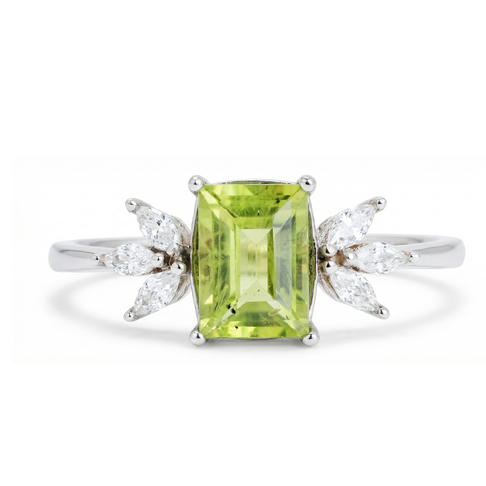 Nature’s Radiance: Emerald-Cut Peridot & Marquise Cluster Ring