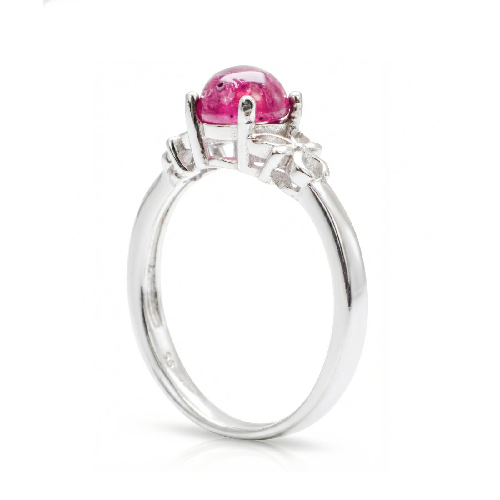 Enchanting Vintage-Style Sterling Silver Ring with Cabochon Ruby